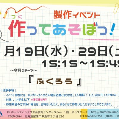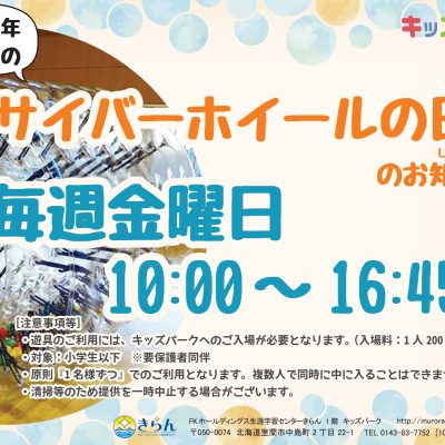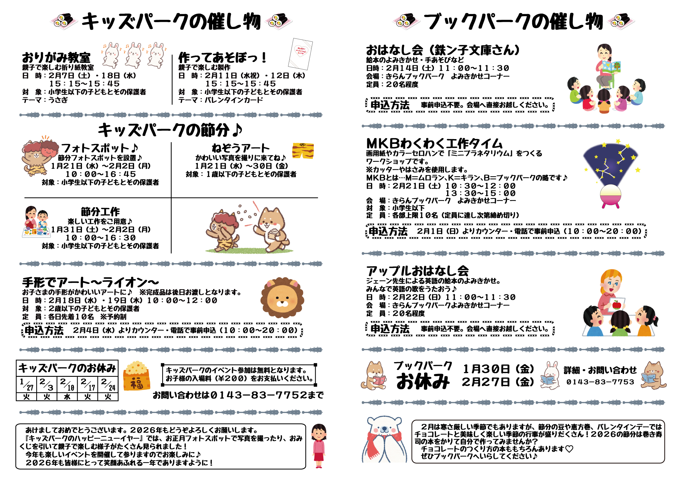 キッズパーク0143-83-775210:00〜17:00毎週火曜日(※祝日、夏休み・冬休み期間は除く)年末年始