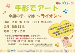 [ 申 込 ]2月4日(水)10:00~からキッズパーク受付または電話にて(TEL 0143-83-7752)