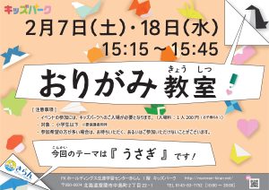 【キッズパーク】『おりがみ教室~うさぎ~』開催!