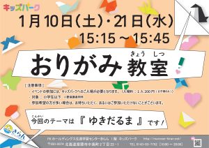 【キッズパーク】『おりがみ教室~ゆきだるま」~』開催!