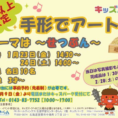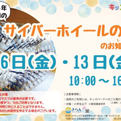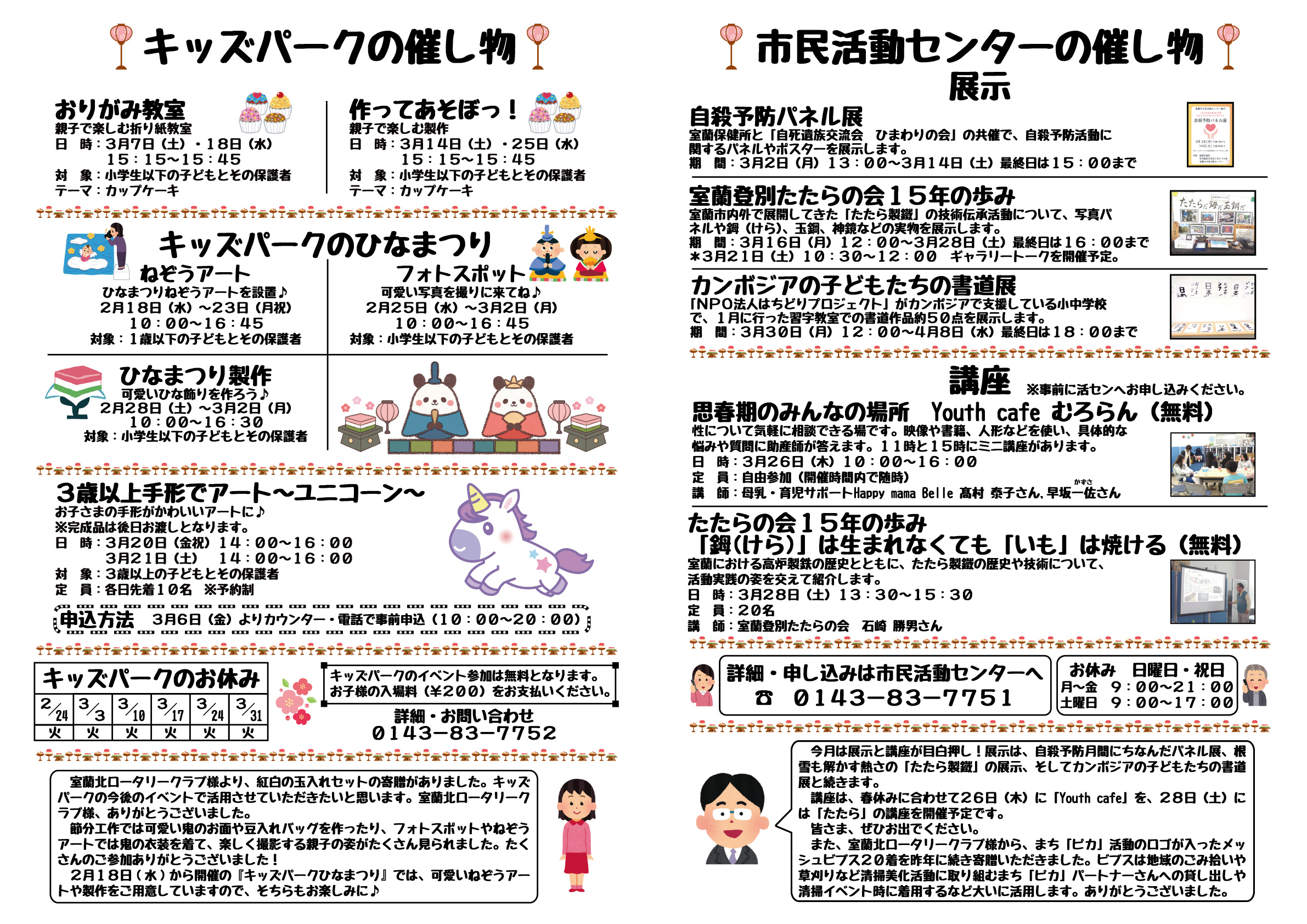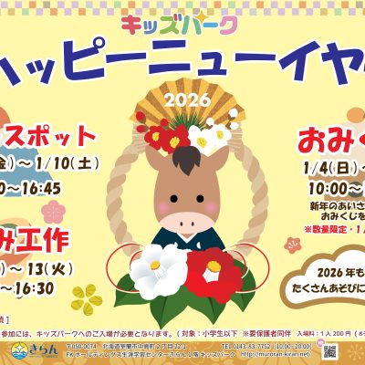 キッズパーク0143-83-775210:00〜17:00毎週火曜日(※祝日、夏休み・冬休み期間は除く)年末年始