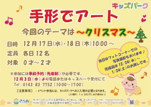 【キッズパーク】2歳以下対象イベント『手形でアート~クリスマス~』開催!